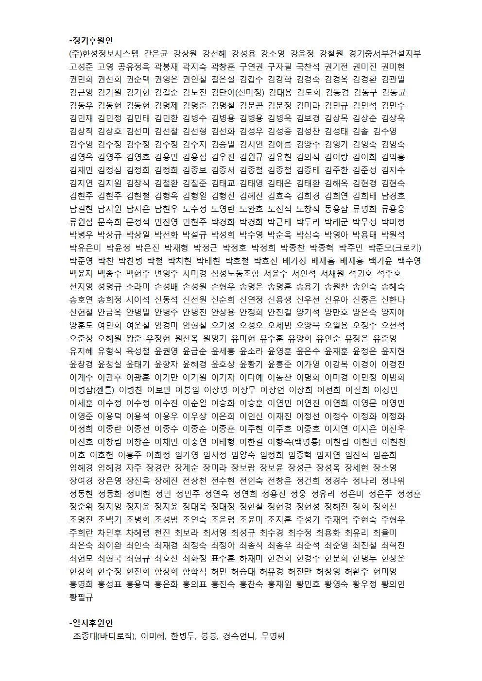 다산을 후원해 주신 모든 분들께 진심으로 감사드립니다. 혹시 본인의 이름이 명단에서 누락되었다면 031-213-2105(아샤활동가)로 연락 주시기 바랍니다.