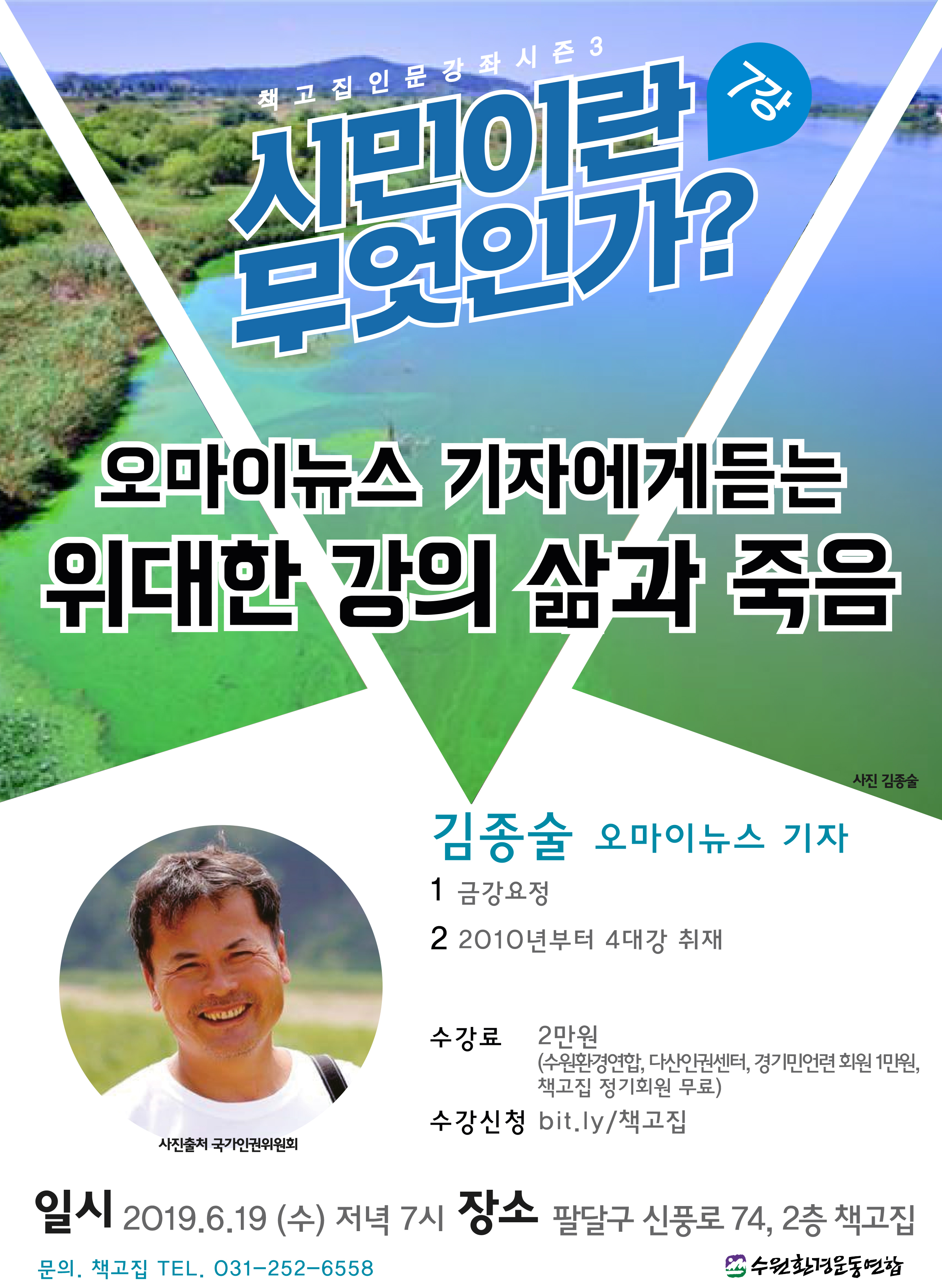 모두의 기억 속에서 점점 잊혀져가던 4대강 공사의 문제점을 긴 시간 동안 꾸준히 제기해 오신 '4대강요정' 김종술 님이 '시민이란 무엇인가?' 일곱 번째 강의를 맡아주실 예정입니다. 많은 관심과 참여 부탁드립니다.