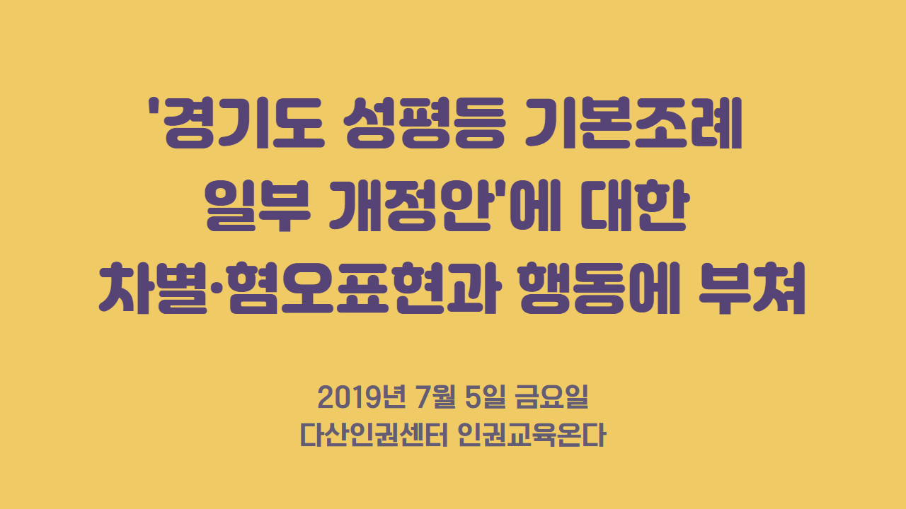 다산인권센터는 경기도의회가 차별·혐오 표현을 하는 이들의 억측과 협박에 굴복하지 않고, 경기도민의 더 많은 인권보장과 평등한 삶을 위하여 도의회 본연의 임무에 충실할 것을 바란다. 개정안을 '반대'하는 이들은 해당 조례안의 내용이 무엇인지와 상관없이 ‘성평등’이 들어갔음을 이유로 비상식적인 행동들을 자행하고 있다. 이들의 이러한 움직임이 인권의 현실을 후퇴시킨다는 것은 자명한 사실이다.