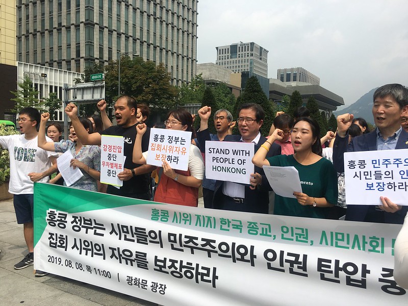 이러한 홍콩 정부의 강경 진압과 중국의 ‘경고’에도 불구하고 홍콩 시민들의 저항은 각계각층으로 확산되고 있다. 지난 8월 5일에는 50만 명이 총파업에 동참하고, 동시다발 시위가 밤늦게까지 이어졌다. 우리는 민주주의와 인권을 지키기 위한 홍콩 시민들의 열망을 지지하며, 홍콩 시민들의 표현의 자유와 집회 시위의 자유가 어떠한 경우에도 보장되어야 한다는 점을 강조한다. 또한, 홍콩 정부가 시위대에 대한 무차별 체포를 중단하고 폭동죄 혐의 기소를 철회할 것을 촉구한다. 우리는 민주주의와 인권을 향한 홍콩 시민들의 평화롭고 끈질긴 저항에 각별히 연대의 뜻을 전하고자 한다.