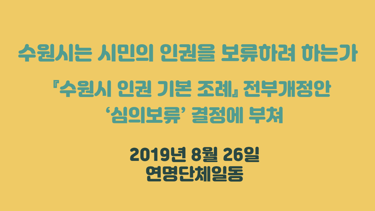 『수원시 인권 기본 조례』 전부개정안 ‘심의보류’ 결정에 부쳐