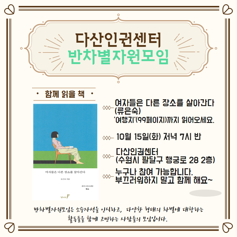 문의는 031-213-2105(다산인권센터)나 페이스북페이지 메시지 등을 통해 해주세요^^