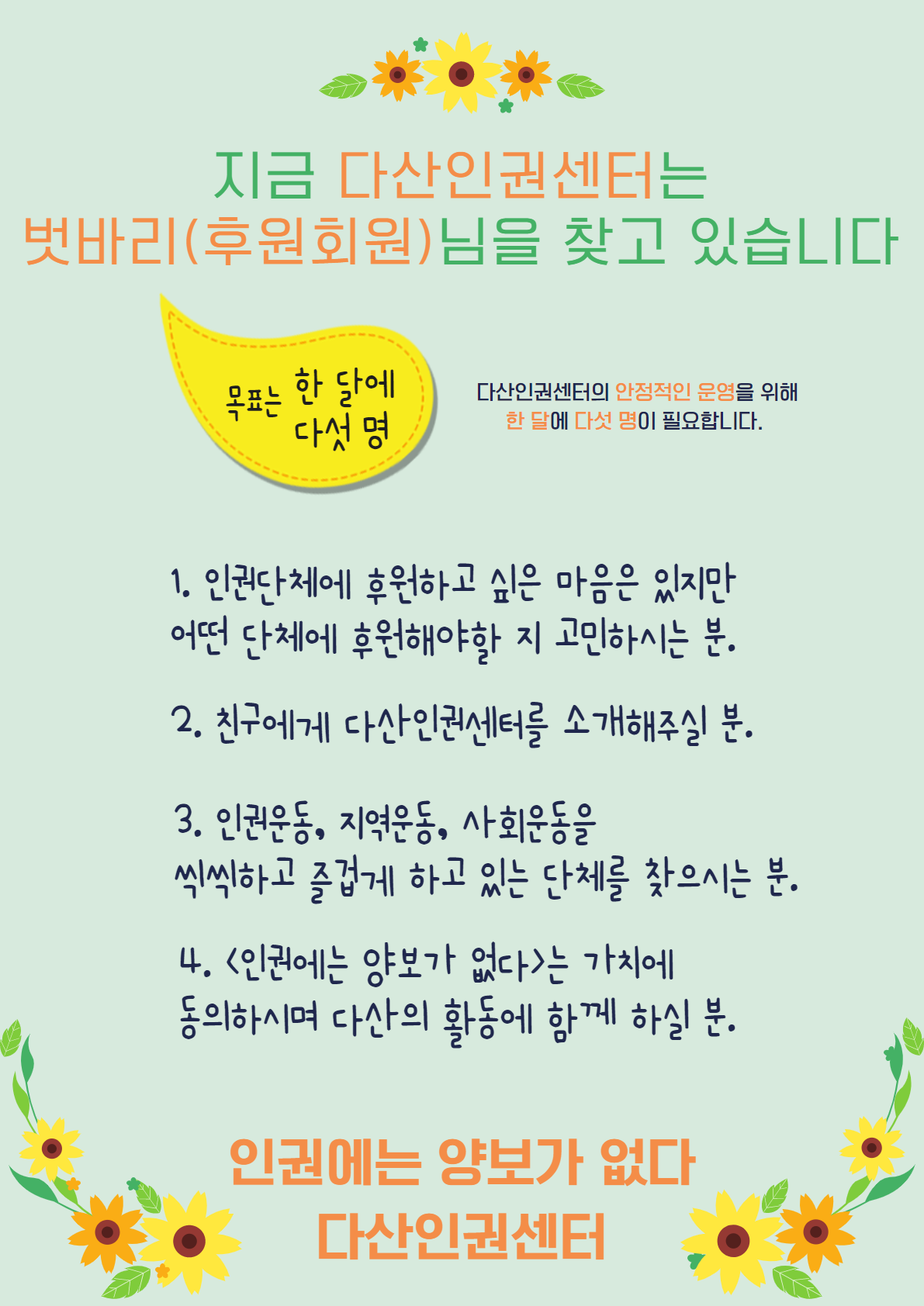 다산인권센터의 든든한 벗바리(후원회원)가 되어주실 분을 찾습니다!