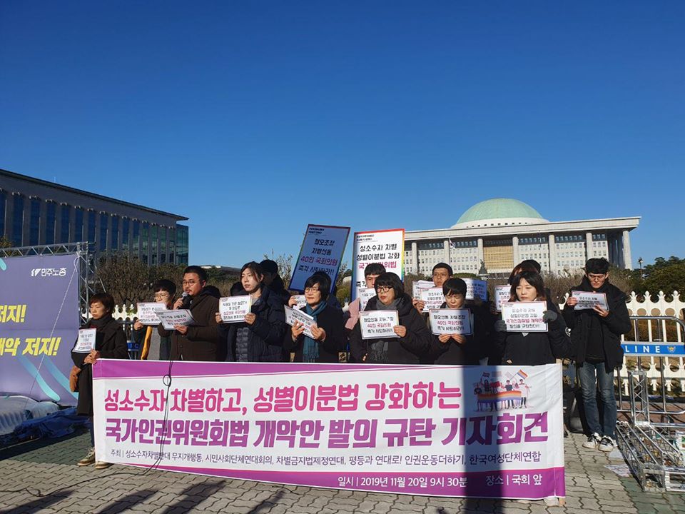 [성소수자 차별하고, 성별이분법 강화하는 국가인권위원회법 개악안 발의 규탄 기자회견]