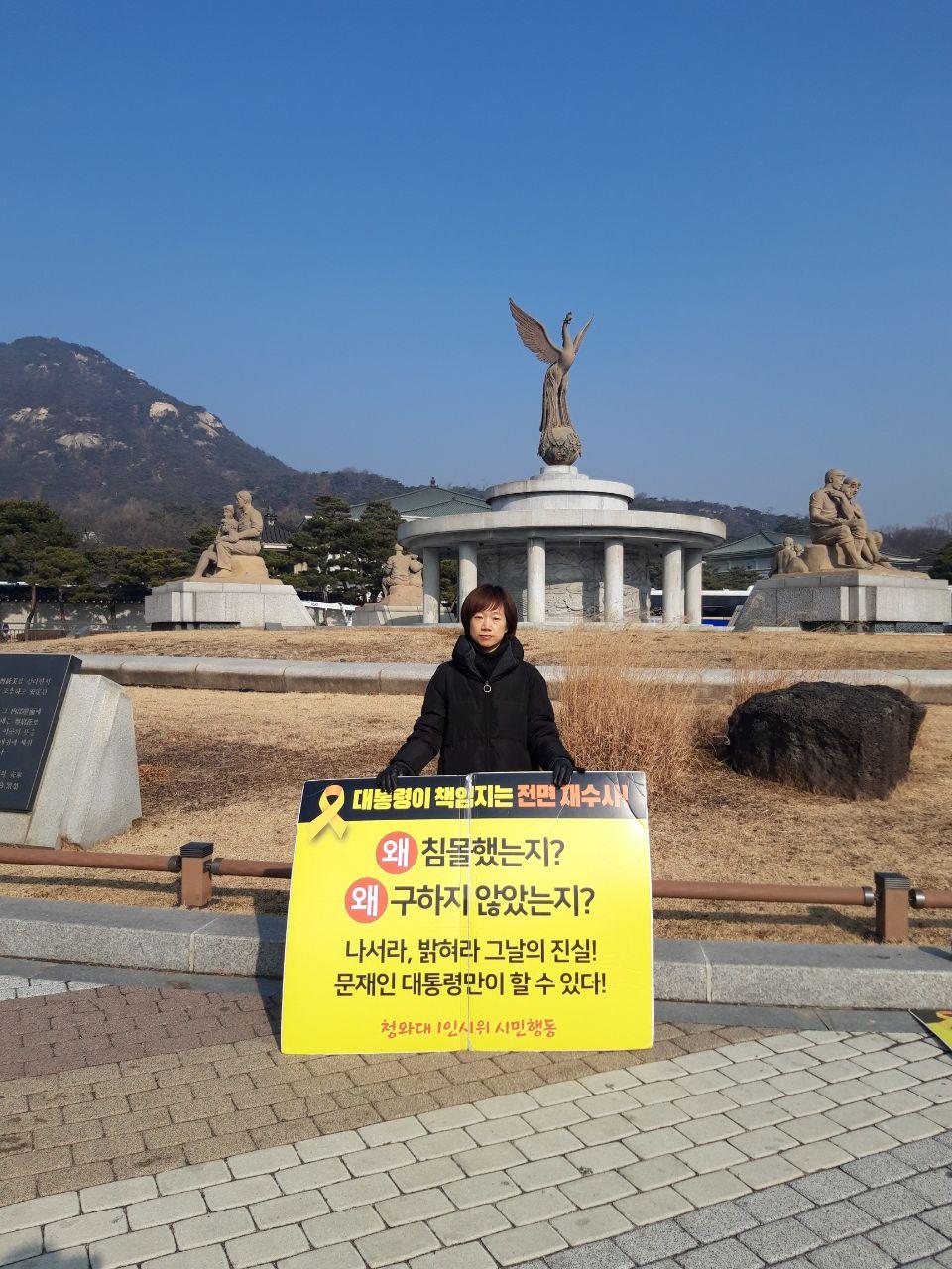 미대사관 앞에서 기자회견을 끝낸 후 청와대 앞에서 경빈엄마와 함께 세월호 피켓팅에 함께 했습니다. 겨울치고는 별로 안 춥다고 생각했는데 오래 서 있으니 발가락이 아프더군요.