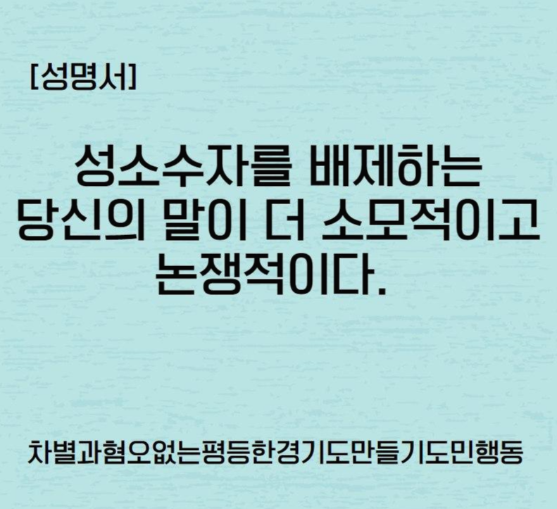 [성 명] 성소수자를 배제하는 당신의 말이 더 소모적이고 논쟁적이다.