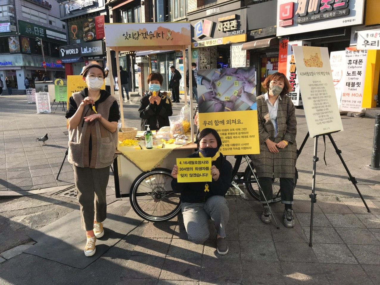 운영 첫 날인 어제는 다산인권센터에서 지킴이를 했습니다. 다산인권센터 사무실에서 수원역까지 자전거를 타고 가면서 시민들에게 세월호 6주기를 알리고, 수원역 7번 출구 앞 문화광장에서 노란 리본을 나눠드리며 기억과 추모의 메시지도 받았습니다. 아직 잊지 않고 있다는, 끝까지 잊지 않겠다는 메시지가 많더군요. 친구의 동생이 세월호 때 하늘나라로 갔다고 하신 어떤 분은 친구가 기다리고 있다고, 꿈에 좀 나타나달라는 메시지를 남겨 주셨습니다.