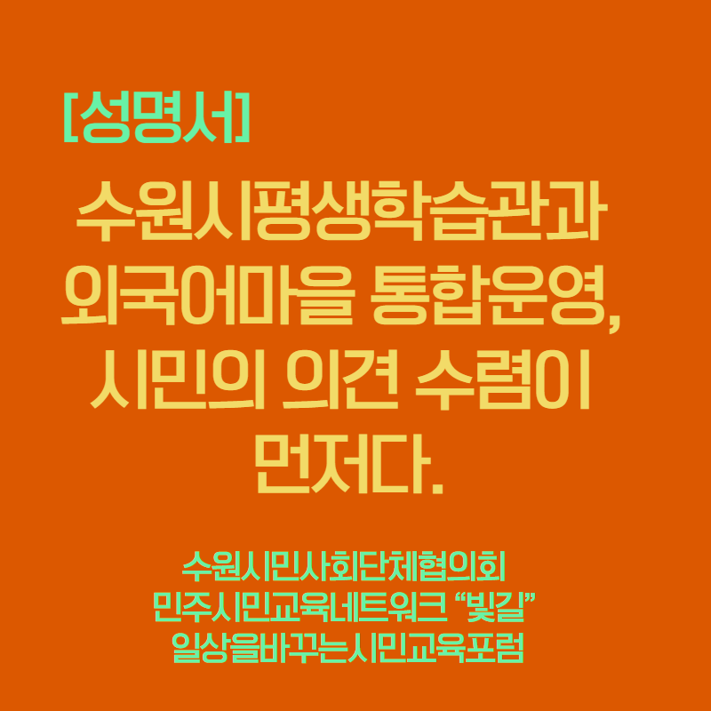 [성명서]수원시평생학습관과 외국어마을 통합운영, 시민의 의견 수렴이 먼저다.