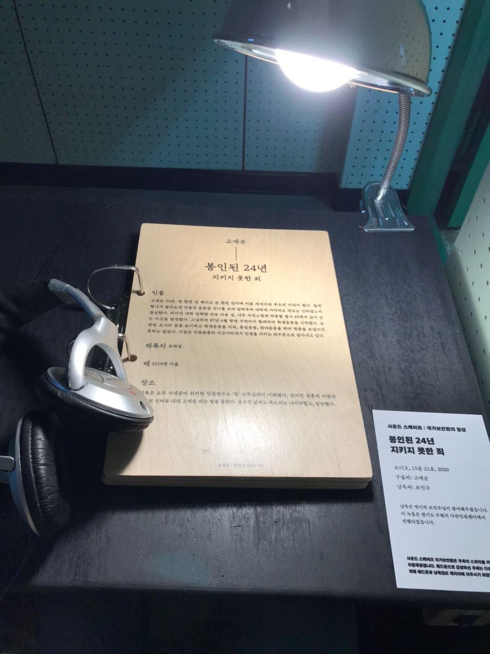 전시 1부 "나의 말이 세계를 터뜨릴 것이다'는 이제까지 한 번도 전면에 들어나지 않았던 국가보안법 여성 피해자들의 이야기를 들려줍니다. 11명의 이야기가 녹음되어 있는 사운드 스케이프는 구 남영동 대공분실 조사실별로 살펴볼 수 있게 구성되었습니다. 조사실에 앉아 그 이야기를 듣고 있노라면 뭐라 형언할 수 없는 이상한 감정이 내 안에서 몇 번이고 들썩이는 것을 느끼게 됩니다. 온라인으로라도 꼭 들어보시기를 권합니다.