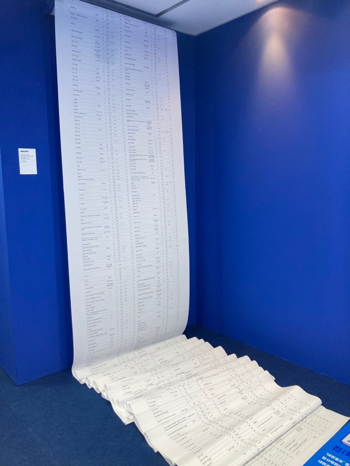 아직 전시회를 보지 않으신 분들을 위해 간단히 설명을 드리면 우선 1층에 들어가면 누군가가 국가보안법을 낭독하는 목소리가 들리면서 전시 방문자들이 필사한 나희덕 시인의 '파일명 서정시'를 전시해 놓은 공간('말의 세계')이 있습니다.