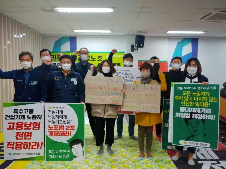 농성장에서 노조 간부들과 간단하게 간담회를 진행했습니다. 민주노총이 요구하는 노동법 개악 저지, 중대재해기업처벌법 제정 더불어민주당 당론 채택, 노조법 2조 개정, 특수고용 건설기계노동자 고용보험 전면 적용은 노동자들이 안전한 환경에서 안정적으로 일하기 위한 최소한의 요구사항인데도 이를 위해 농성까지 해야하는 현실에 화가 났습니다. 지금도 충분히 많은 수의 노동자들이 일하다 죽어가고 있는데 도대체 이러한 현실을 바꾸기 위해 정치인들은 뭘 하고 있는 걸까요?