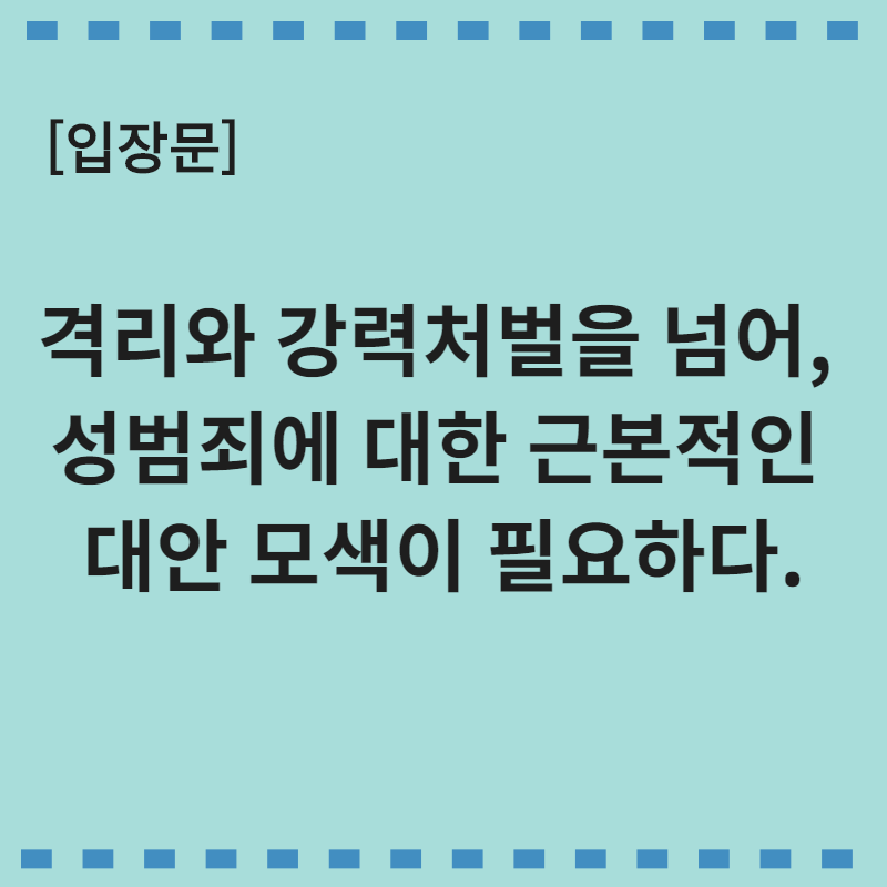 격리와 강력처벌을 넘어, 성범죄에 대한 근본적인 대안 모색이 필요하다.