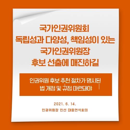 무엇보다 우리는 인권위원 후보추천위원회의 제도화를 위해 청와대와 국가인권위원회가 나설 것을 촉구한다. 인권위원장만이 아니라 인권위원 후보추천위는 2010년부터 국내외 인권단체들이 요구했던 것으로, 인권위의 독립성, 다양성 및 책임성을 높이는데 있어 필수적이다. 또한 2018년 구성된 국가인권위원회 혁신위원회가 내놓은 주요 혁신과제이기도 하다.