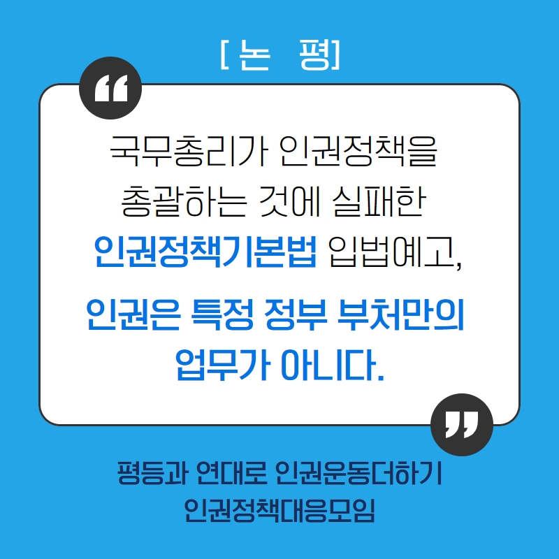 국무총리가 인권정책을 총괄하는 것에 실패한 인권정책기본법 입법예고,