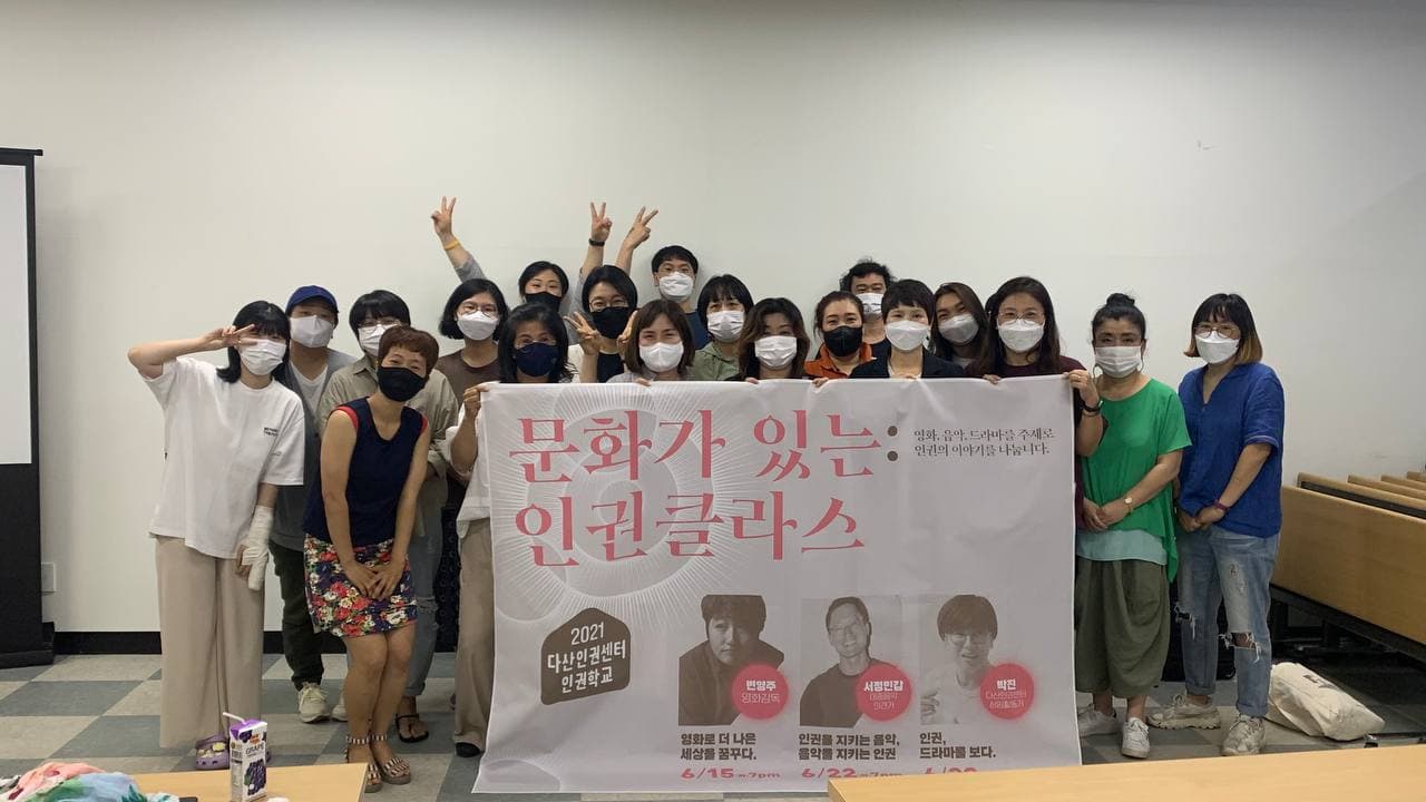 지난 화요일(6월 29일)을 마지막으로 '문화가 있는 인권클라스' 3주간의 대장정이 끝났습니다. 아주 오랜만의 대면 행사라 수강생이 적으면 어떡하나 걱정했는데, 생각보다 많은 분들이 함께 해주셔서 성황리에 강좌를 끝낼 수 있었습니다. (모든 참여자들이 방역수칙을 지키고, 최대한의 거리두기를 하여 안전하게 진행했습니다.)