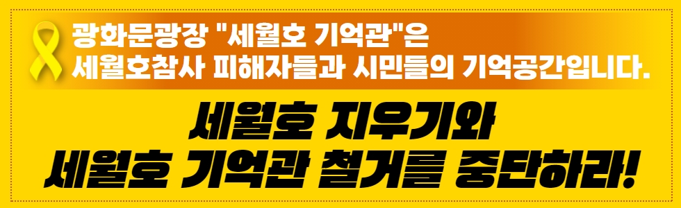 광화문 광장 세월호 기억관에 대한 서울시의 일방적인 철거 통보는 세월호참사의 기억을 시민들에게 지우려는 행동이며 철거 계획은 지금 당장 철회되어야 합니다.