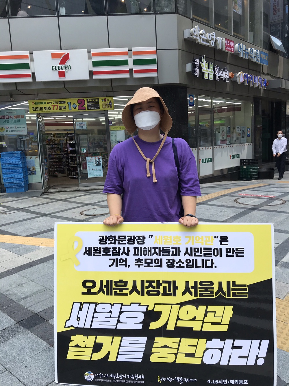 기억관 철거에 반대하는 시민들이 이렇게 목소리를 내고 있지만 서울시는 여전히 광화문 광장 공사를 핑계로 7월 26일(월)에 세월호 기억관을 철거하겠다고 통보했습니다. 그래서 월요일 철거 전, 토일월 광화문광장 기억관 일대에서 릴레이 1인 시위를 진행한다고 합니다. 더운 날씨이지만 할 수 있는 만큼 조금씩 참여해주시면 어떨까요?
