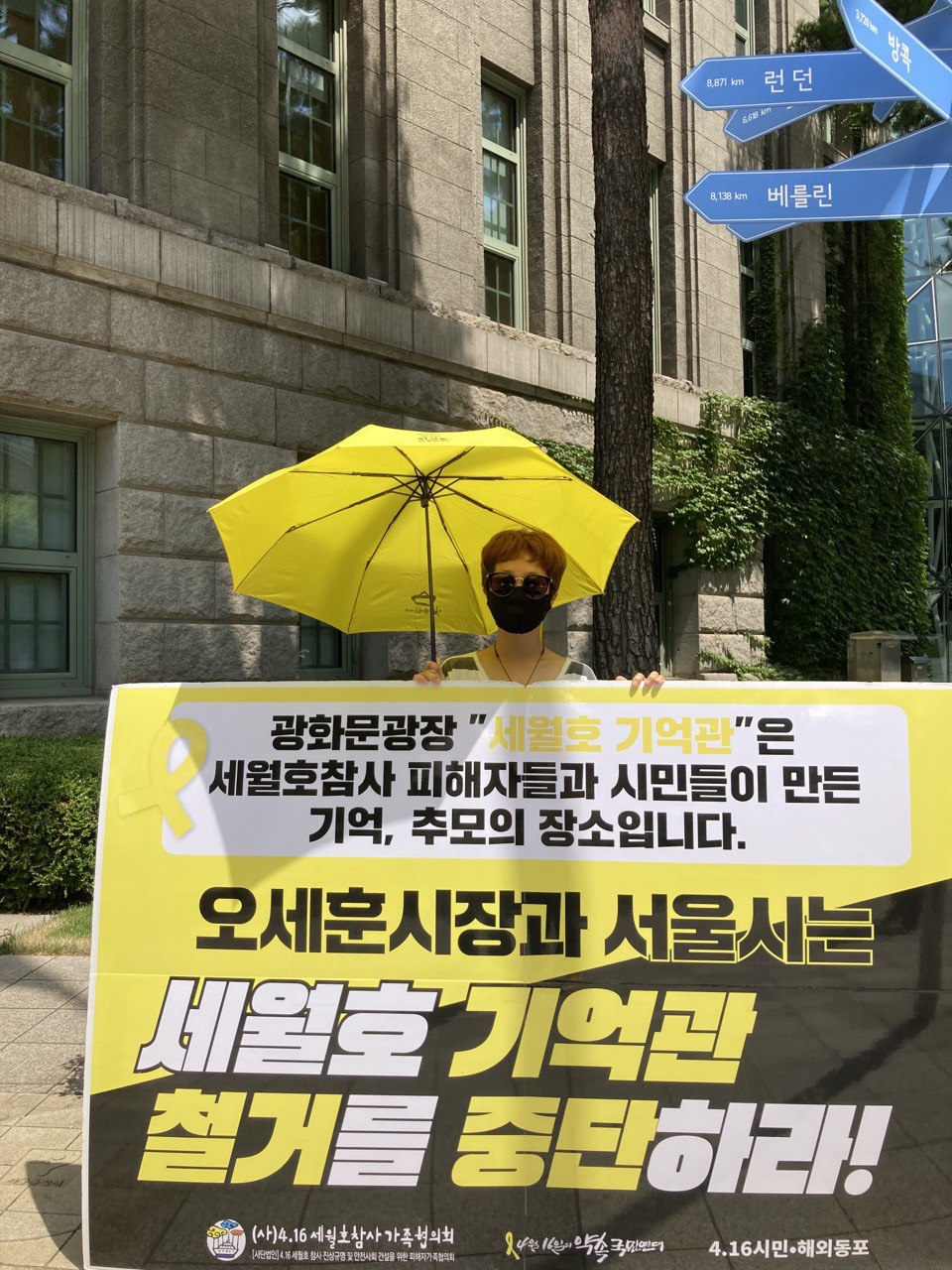 기억관 철거에 반대하는 시민들이 이렇게 목소리를 내고 있지만 서울시는 여전히 광화문 광장 공사를 핑계로 7월 26일(월)에 세월호 기억관을 철거하겠다고 통보했습니다. 그래서 월요일 철거 전, 토일월 광화문광장 기억관 일대에서 릴레이 1인 시위를 진행한다고 합니다. 더운 날씨이지만 할 수 있는 만큼 조금씩 참여해주시면 어떨까요?