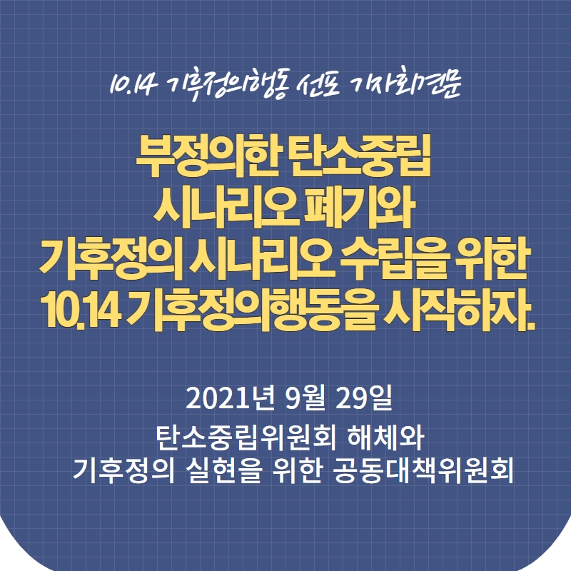 부정의한 탄소중립 시나리오 폐기와 기후정의 시나리오 수립을 위한 10.14 기후정의행동을 시작하자