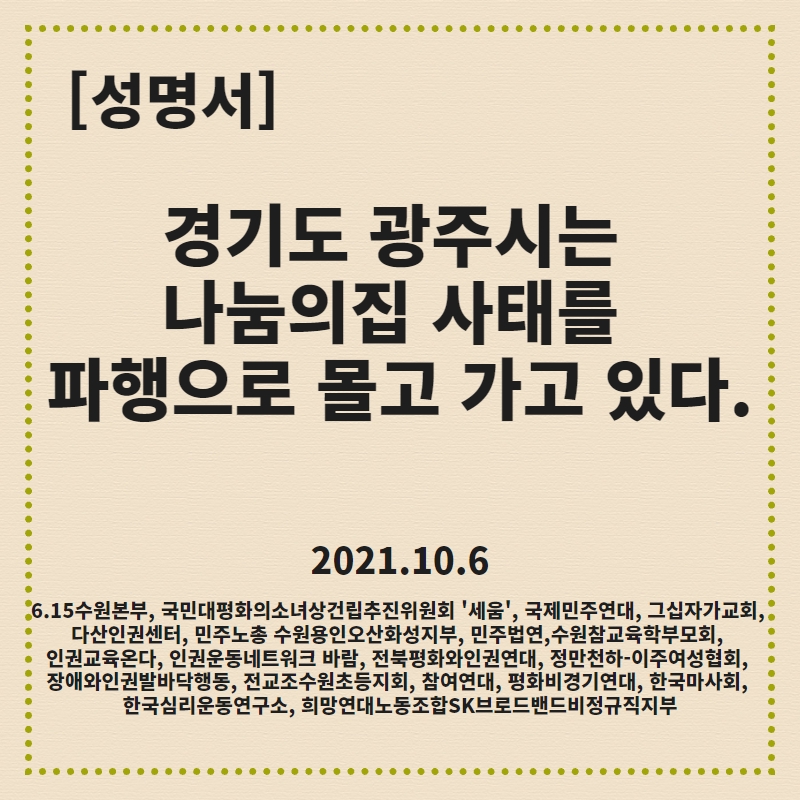 [성명서] 경기도 광주시는 나눔의집 사태를 파행으로 몰고 가고 있다.
