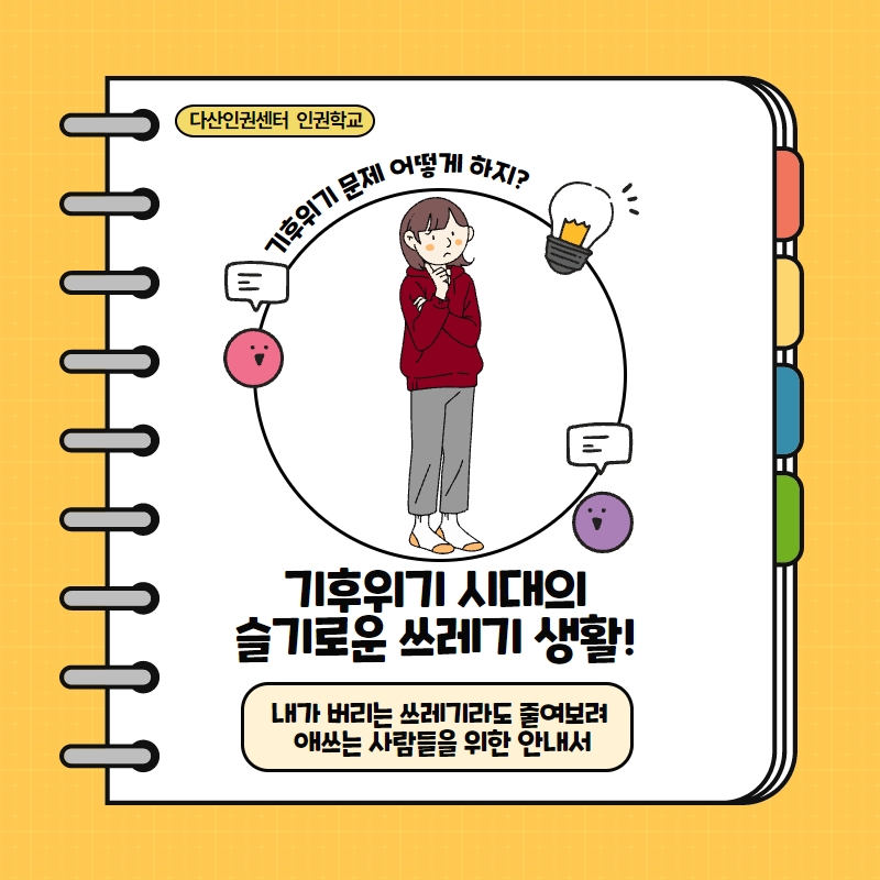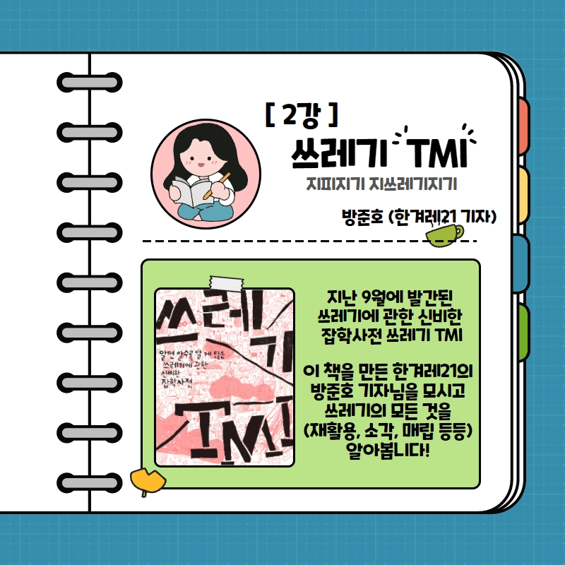 일상에서 가장 흔하게 접할 수 있는 '쓰레기 문제'를 통해 기후 위기의 무겁고, 가벼운 문제들을 이야기 하고 함께 고민을 나눠봐요.