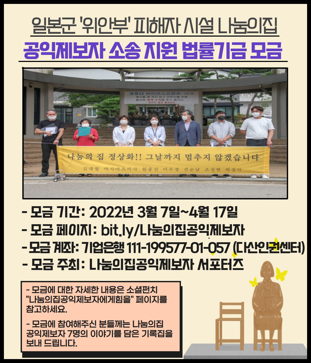 일본군 '위안부' 피해자 시설 나눔의집 공익제보자들을 위한 법률기금 모금에 함께 해주세요!