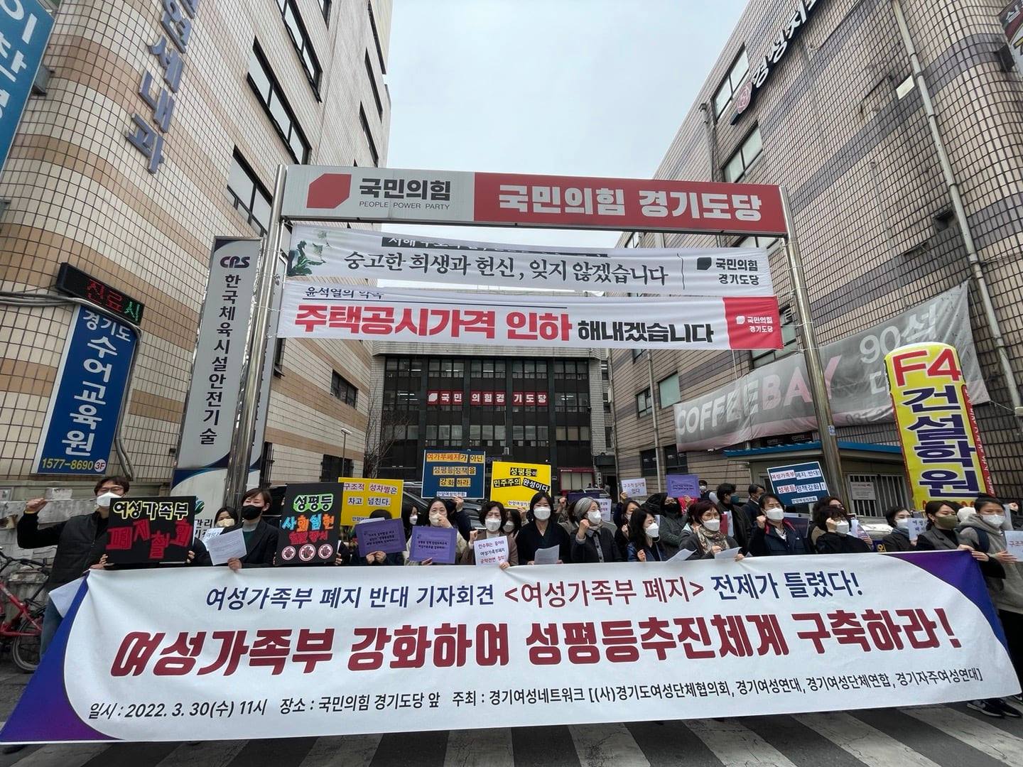 무엇보다 일각에서는 여성가족부 폐지 이후 성평등 정책 사안에 대해 대통령 직속위원회 구성을 운운하고 있다. 이미 윤석열 대통령 당선자의 낮은 성평등 인식 수준은 확인된 바다. 더구나 법률제출, 예산편성 등 독립부처가 가지게 되는 권한이 직속위원회가 가질 수 없다는 문제와 겹치면 ‘아무런 역할 없음’으로 될 소지가 크다. 그나마 소극적으로 유지되고 있던 성평등 추진체계마저 무력화해 버린다는 점에서 심각하게 받아들이며 분명하게 반대한다.