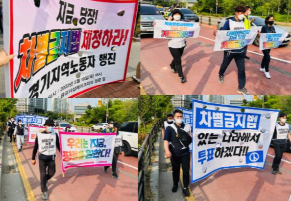 차별금지법 제정을 외치며 경기지역 노동자 행진을 박광온 의원 집앞에서 시작했습니다.