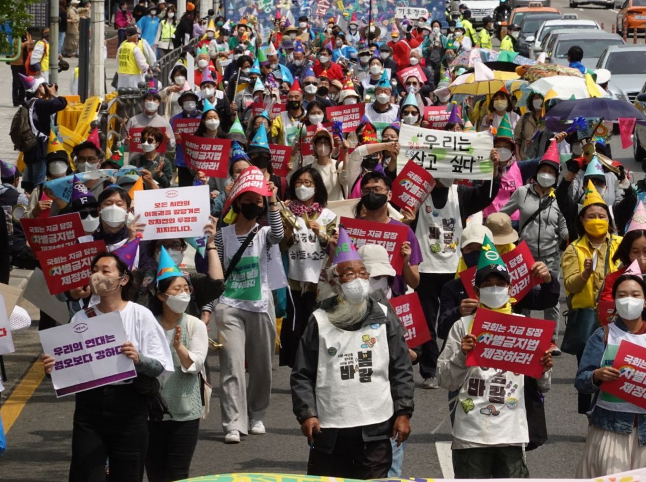 다른 세상을 만드는 4.30 봄바람에 함께했습니다. 인권, 평화, 평등, 생태, 노동의 가치를 중시하고, 다른 세상을 꿈꾸고 만들어 가려는 사람들과 함께 신나는 하루를 보냈습니다. 오후 1시 용산 전쟁기념관을 출발하여 종로 SK 본사 앞까지 행진이 이어졌습니다. 풍물패의 흥겨운 사물놀이와 차별금지법제정연대에서 만든 알록달록 고깔모자가 축제 분위기를 더했습니다. 행진에 참여하면서 우리가 바라는 다른 세상은 우리 손으로 만들어 갈 수 밖에 없다는 생각을 하게 되었습니다. 더 자주 모여서 말하고, 요구하고, 실천하는 것. 그것이 다른 세상을 만들기 위한 우리의 가장 강력한 방법이 아닐까요!
