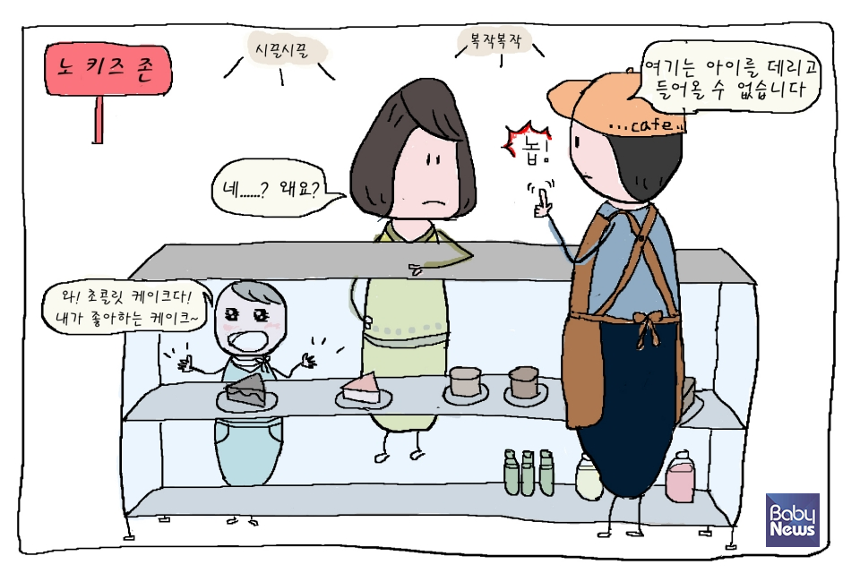 그 날은 광교에 있는 도서관에 가기로 한 날이었습니다. 가는 길에 모두 시원하게 음료 한 잔씩 마시기로 하고, 제가 가끔 가는 카페에 들렀습니다. 동생이 주차를 하는 사이 저는 조카들을 데리고 카페 안으로 들어갔습니다. 오전 시간이라 손님은 한 분 밖에 없었습니다. 제가 주문을 하기 위해 카운터로 가자 조카들은 테이블로 가서 앉았습니다. 주문을 하려고 하는데 사장님이 난처한 표정을 지으며 '여기서 먹고 가실거냐?'고 물었습니다. '네'라고 대답하니 '여기는 노키즈 존'이라는 대답이 돌아왔습니다.