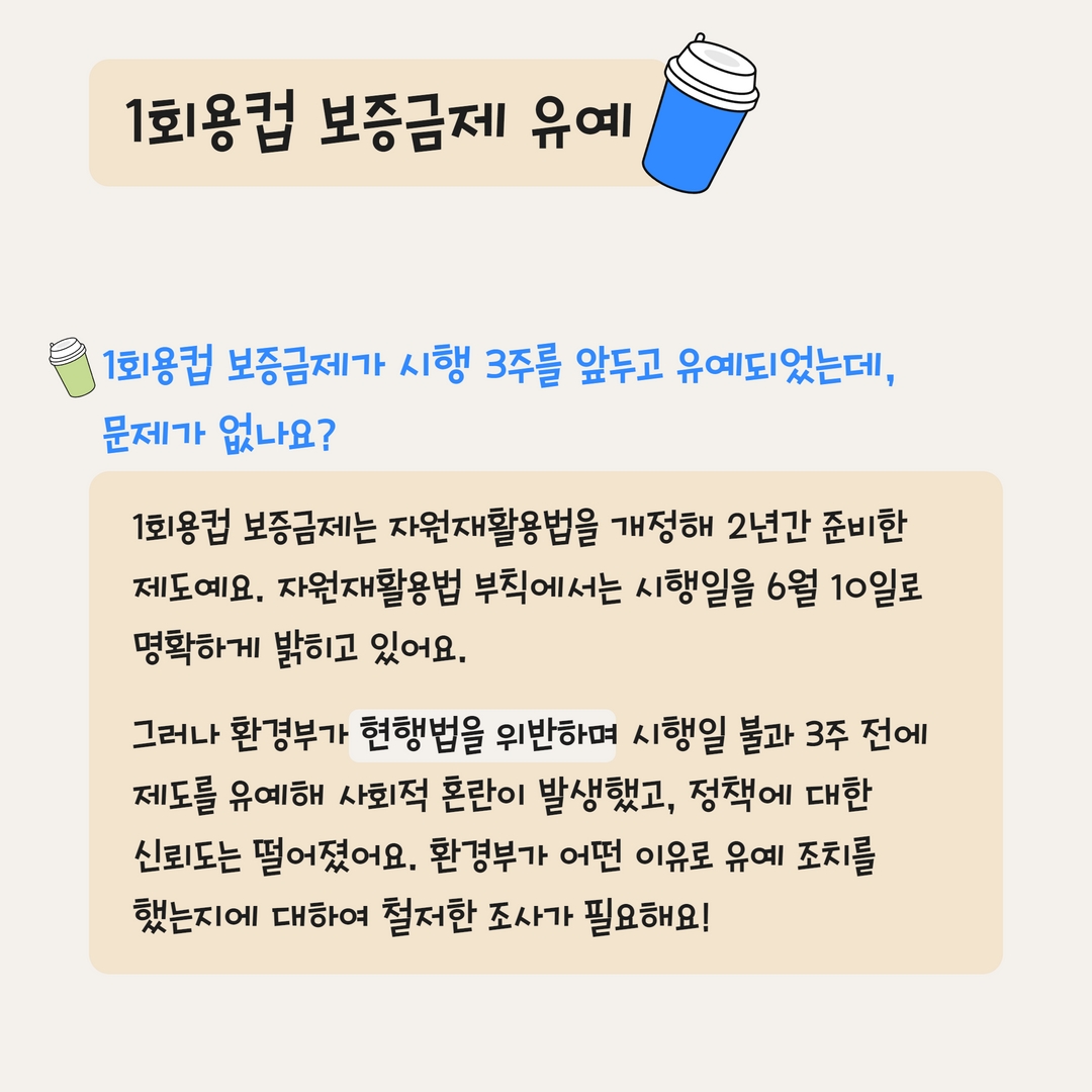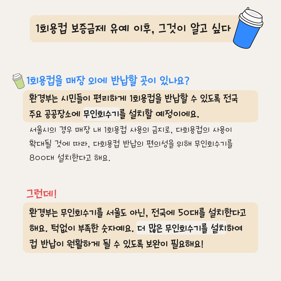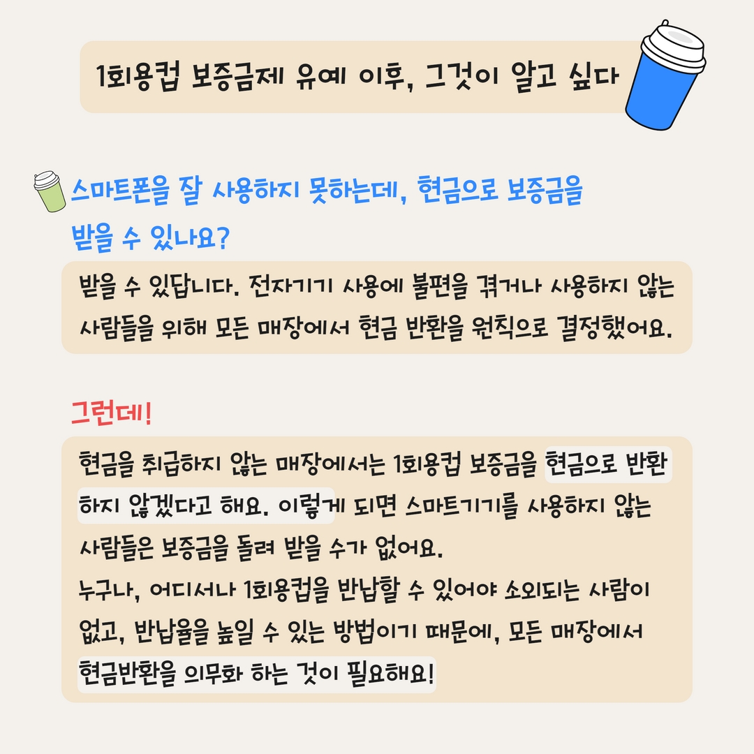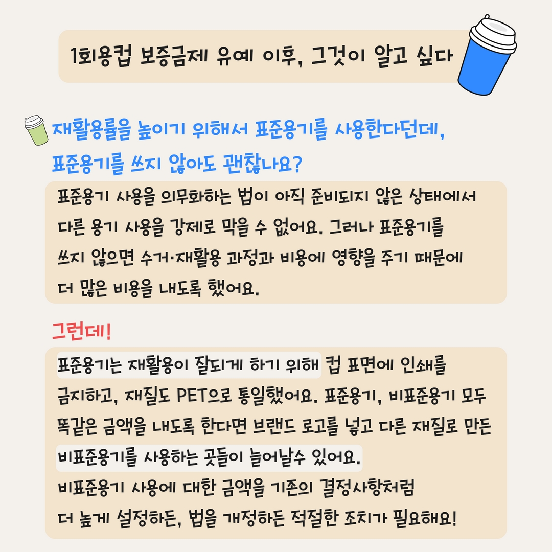 [카드뉴스] 1회용컵 보증금제 유예 이후, 그것이 알고 싶다.