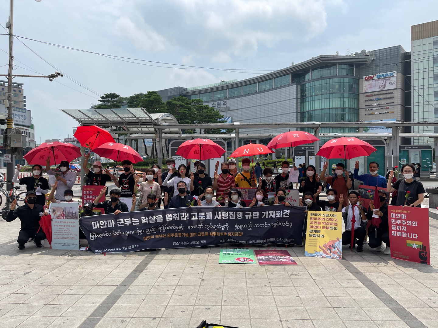 미얀마 민주주의를 지지하는 수원지역 시민사회단체를 비록한 미얀마 이주민은 2022년 8월 7일(일) 오후 1시 수원역 문화광장 앞에서 <미얀마 군부는 학살을 멈춰라! 고문과 사형집행 규탄 기자회견>울 통해 미얀마의 '8888 항쟁'을 기념하고, 미얀마 시민들의 아픔에 연대를 표했습니다.