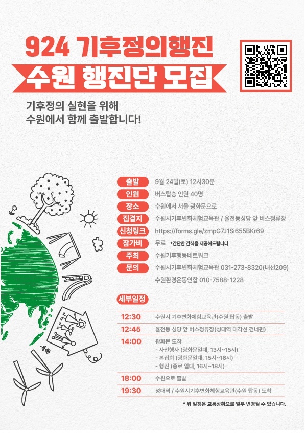 924 기후정의행진에 함께 갈 수원행진단을 모집합니다!