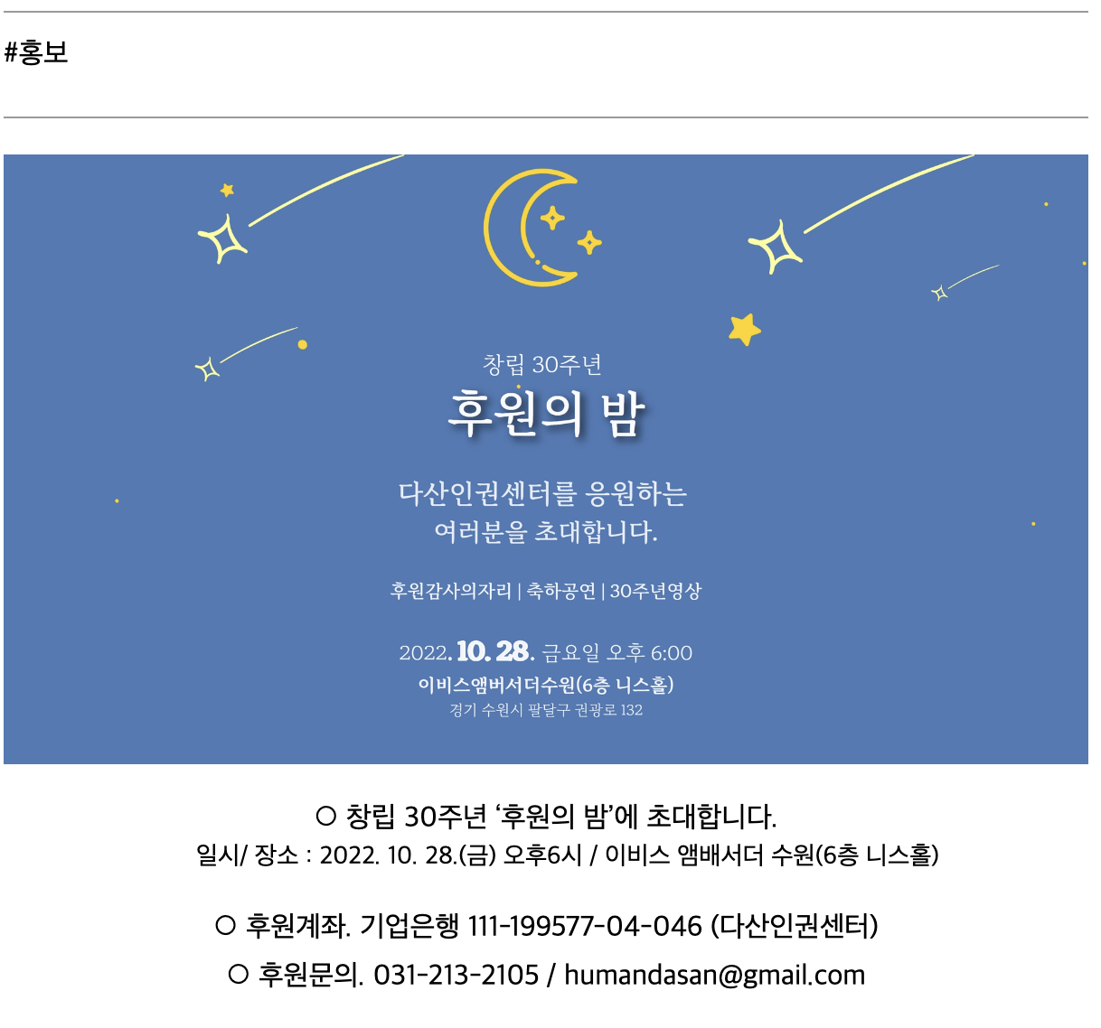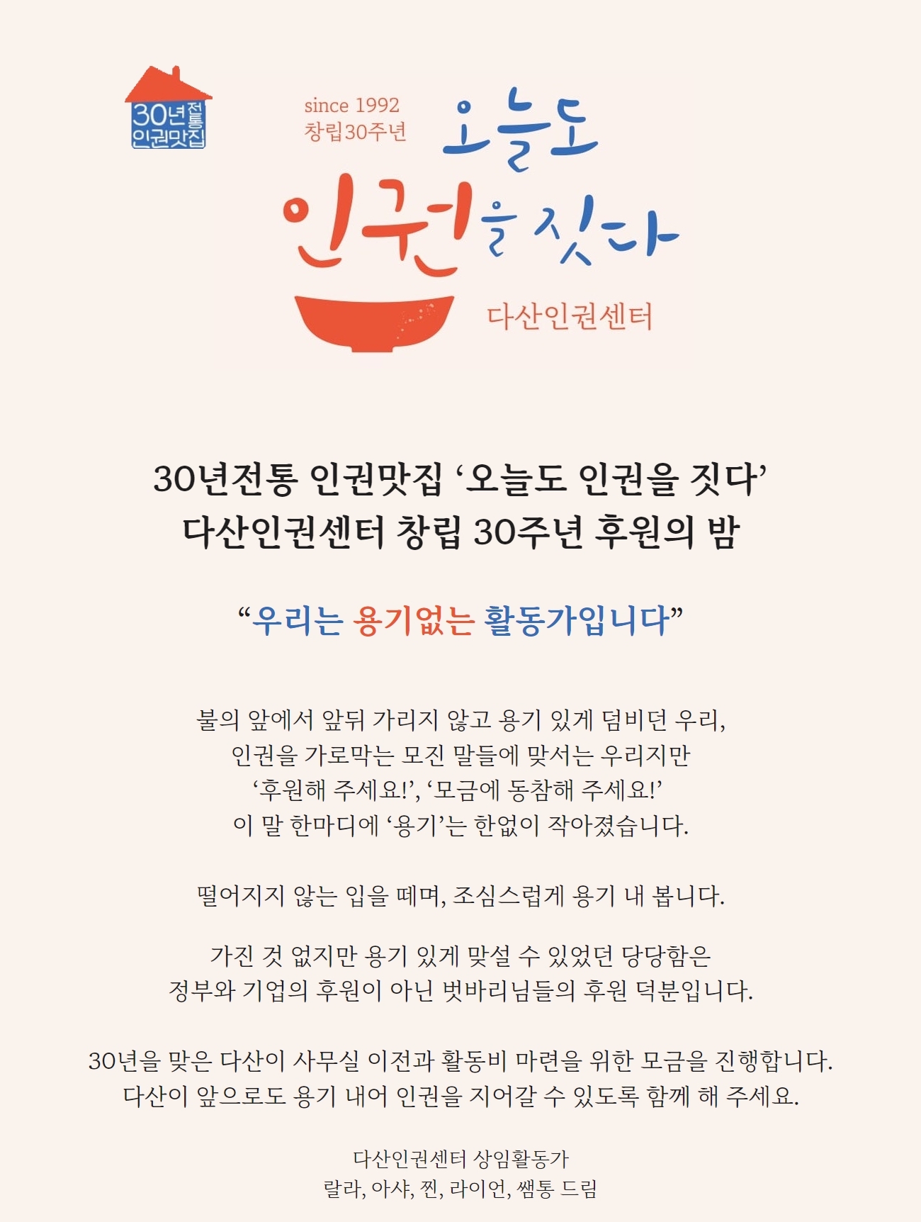 - 10월 28일 다산인권센터 30주년 후원의밤