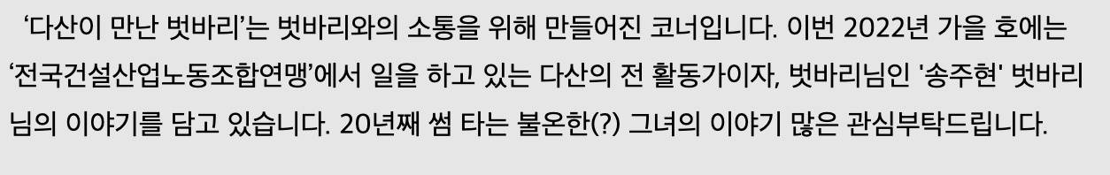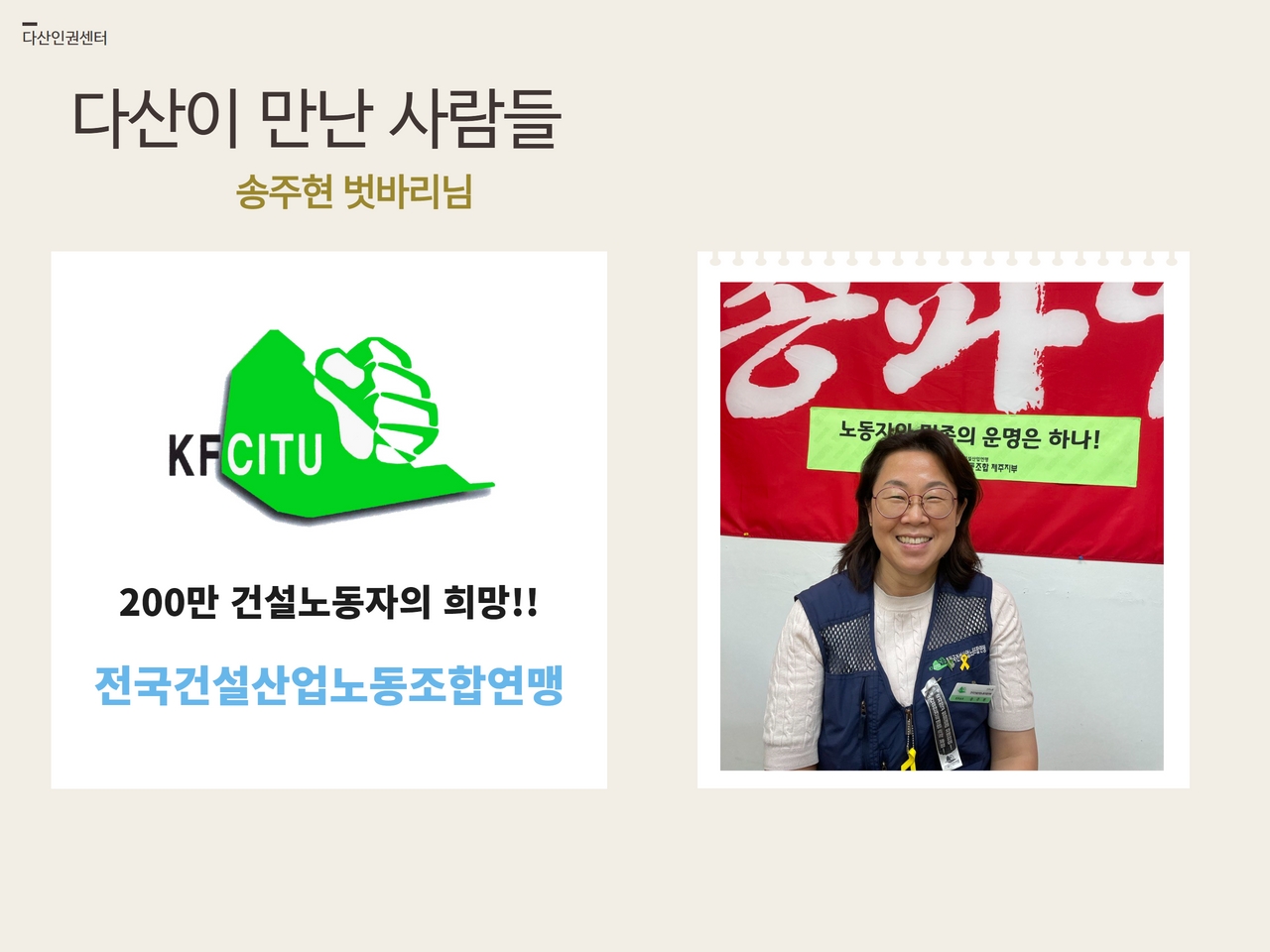 〇 다산이 만난 사람들 : 송주현 벗바리(전국건설산업노동조합연맹)