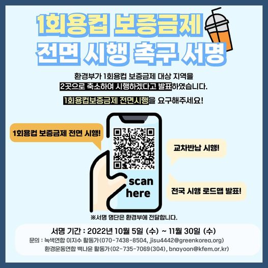 [서명 요청] 1회용컵 보증금제 전면 시행 촉구 서명