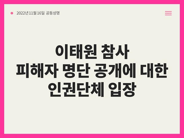 이태원 참사 피해자 명단 공개에 대한 인권단체 입장