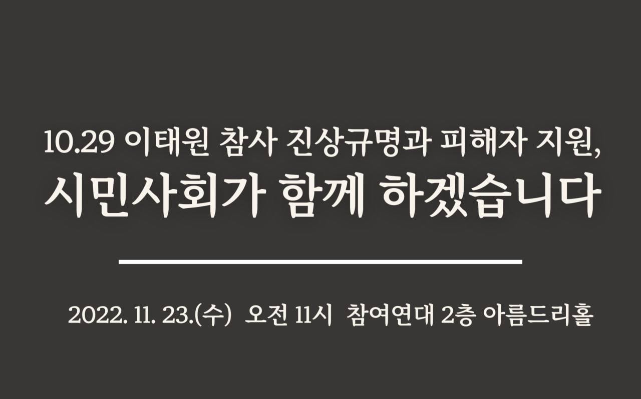 [기자회견] 10.29 이태원 참사 진상규명과 피해자 지원 시민사회가 함께 하겠습니다