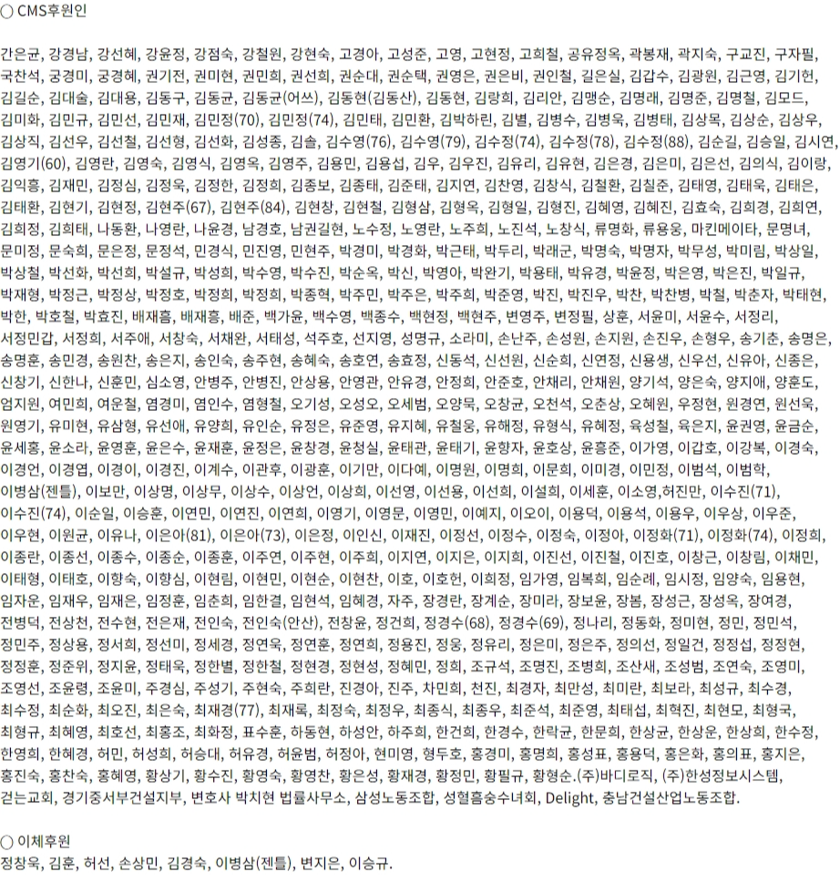 ※ 후원명단 정리 중에 착오로 누락된 후원인이 있을 수 있습니다.