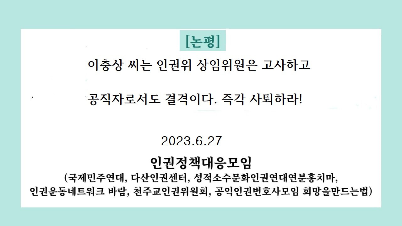 이충상씨는 즉각 인권위 상임위원에서 사퇴하라!
