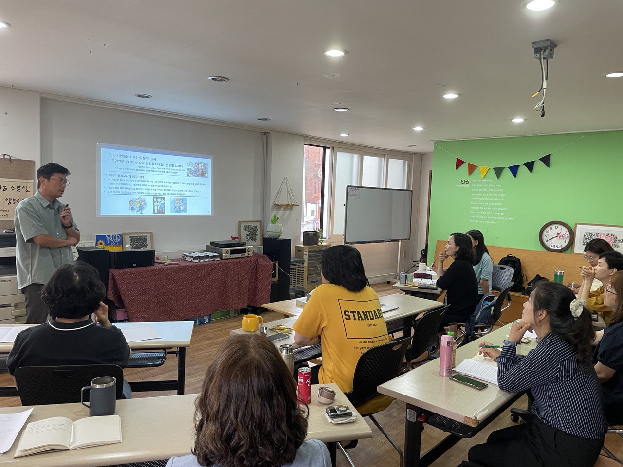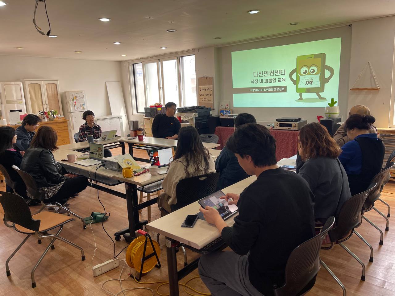 다양한 인권영역과 이슈에 대한 민간성을 유지하고, 평등하고 지속가능한 조직문화를 위한 다산인권센터 상임활동가 역량강화 교육이 2023년 4월10일(월) 오전10시30분에 진행되었습니다. 최근 다양한 일터에서 제기되고 있는 직장내 괴롭힘에 대해 직장갑질119의 오진호활동가를 강사로 초대해 함께 배우는 시간이 마련되었습니다. 이번 교육은 다산활동가와 함께 인권교육 온다, 수원환경운동연합, 수원여성회 등 지역 시민사회단체 활동가들도 함께 해 문제의식과 실천과제를 고민하는 자리가 되었습니다.