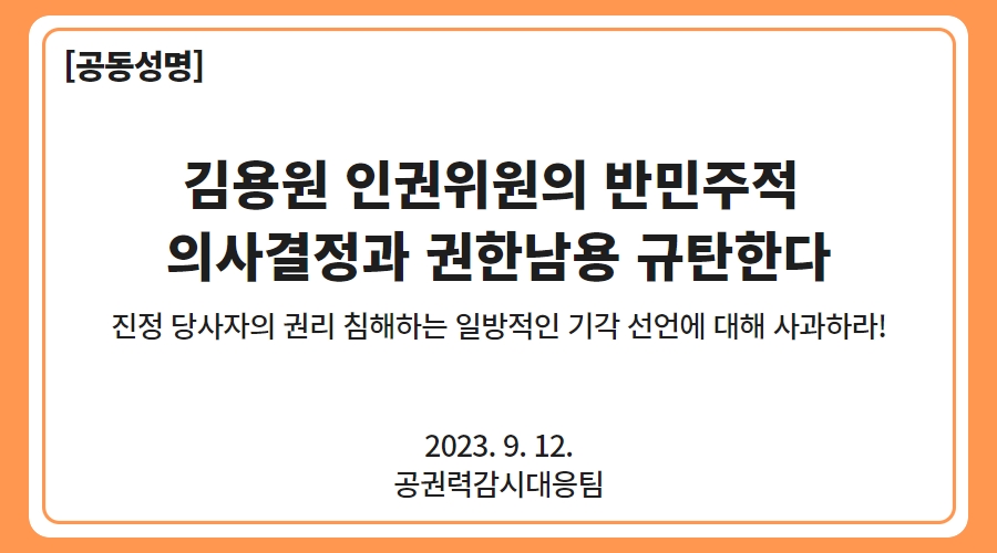 [공동성명] 김용원 인권위원의 반민주적 의사결정과 권한남용 규탄한다.