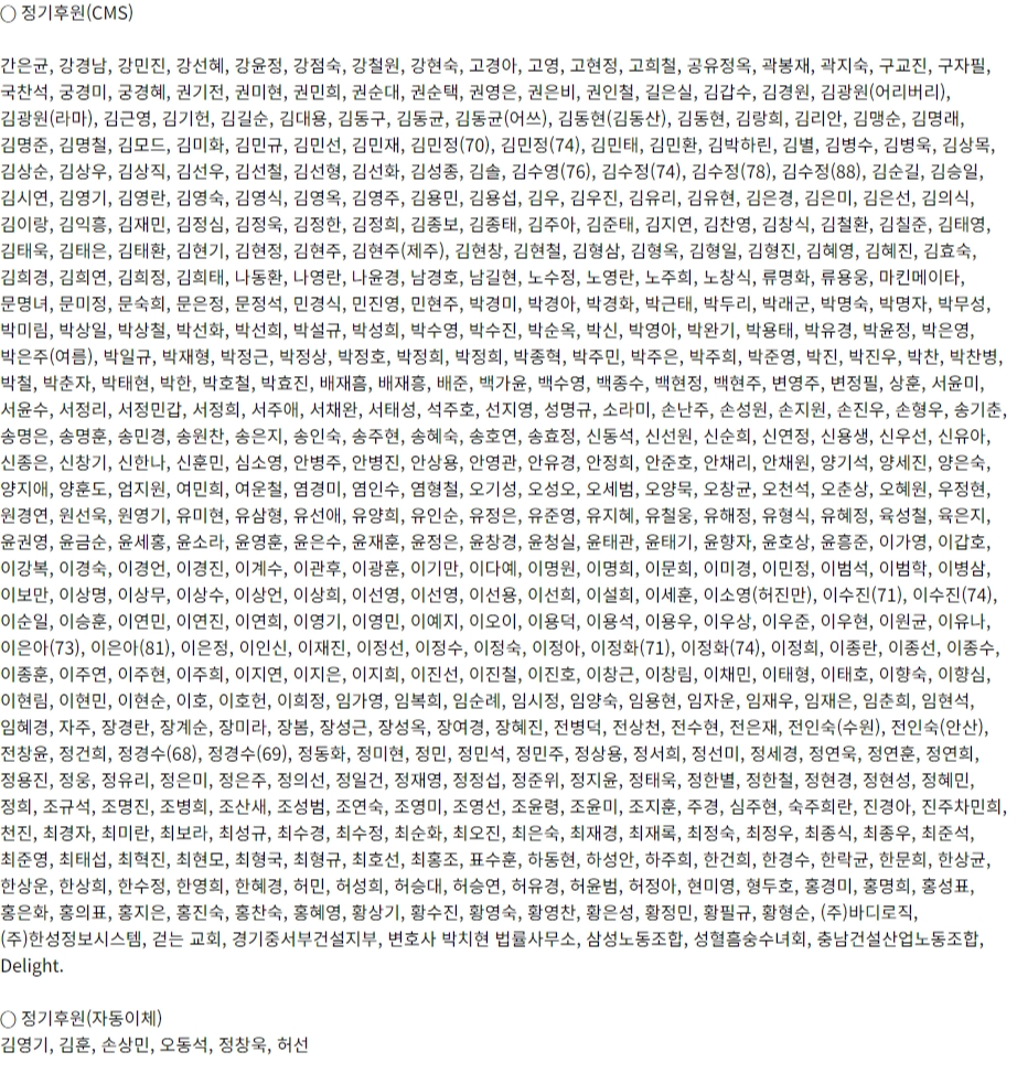 ※ 후원명단 정리 중에 착오로 누락된 후원인이 있을 수 있습니다.
