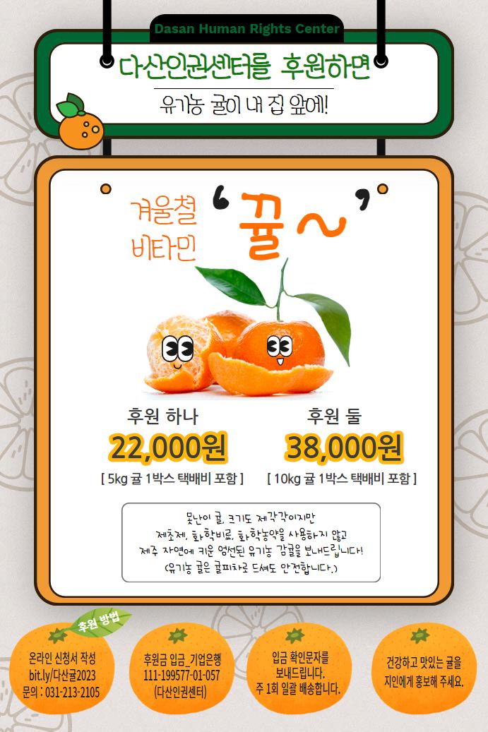 다산인권센터를 후원하면~ 유기농 🍊 귤이 내 집 앞에!