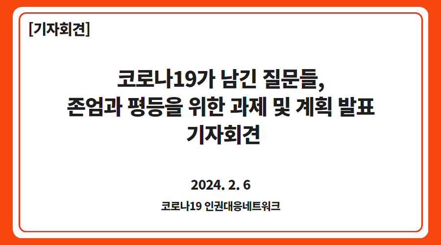우리는 코로나19가 우리 사회에 남긴 질문을 돌아보고자 합니다. 코로나19로 드러난 문제들이 해결되지 않는다면 우리 삶 역시 달라지지 않기 때문입니다. 그리고 떠난 이들에 대한 추모와 애도를 통해 생명과 안전의 의미를 되새기고자 합니다. 변화와 성찰 없는 사회는 또 다른 재난과 참사를 반복하는 시작입니다. 소중한 생명을 잃고나서 깨닫는 후회가 아니라, 누군가를 잃지 않고 살아갈 수 있는 사회를 만들어가는 것이 필요합니다. 또 다른 위기를 반복하지 않기 위해 우리는 계속 질문하고 행동할 것입니다.