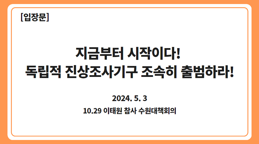 지금부터 시작이다! 독립적 진상조사기구 조속히 출범하라!