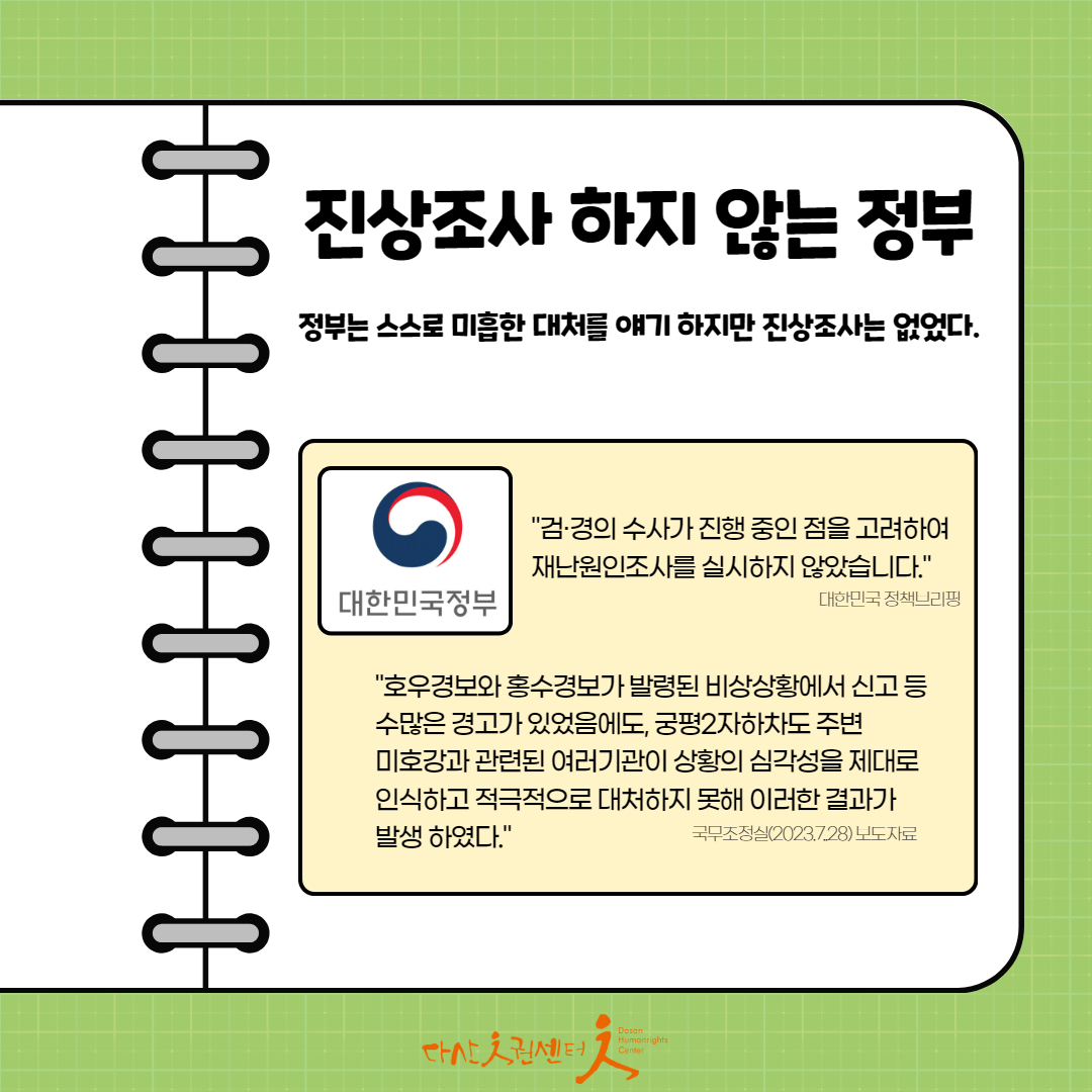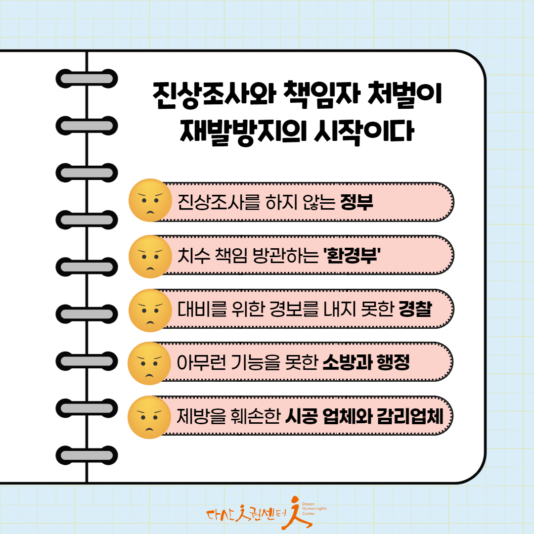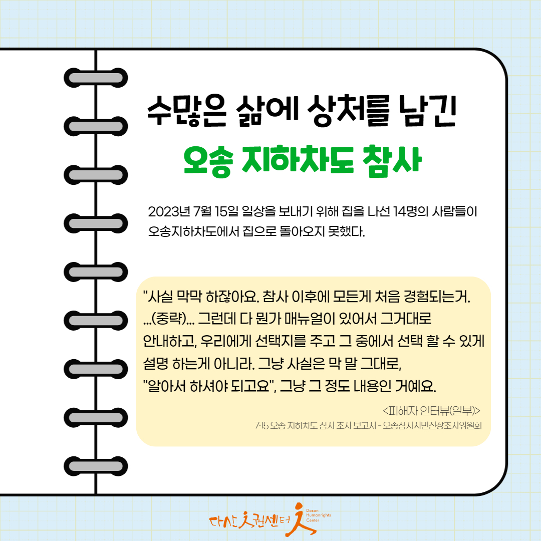 #7월15일 #오송지하차도참사 #기후재난X #시스템의실패O #기후재난이아니다 #진상조사하라 #재발방지대책 #다산인권센터