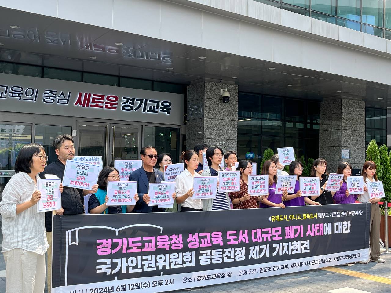 우리는 경기도교육청의 이번 행위를 묵과한다면 다시 또 다른 기준으로 그 어떤 도서든 겸열의 대상에 오르내리고 ‘금서’로 지목되며 공공의 장소에서 퇴출될 수 있다는 깊은 우려 속에서 572명의 공동진정인들과 함께 국가인권위원회에 차별 시정을 요구하는 진정을 제기한다. 우리는 경기도교육청이 차별적이고 부당한 민원을 이유로 학교도서관에서 정당한 이유없이 성교육 도서가 폐기, 열람제한되지 않도록 지침을 마련하고, 학생 및 교사의 권리를 보장하는 등 필요한 모든 조치를 다할 것을 강력하게 요구한다. 교육현장에서 평등과 자유를 제거하려는 시도는 절대 용납될 수 없다. 지금이라도 부끄러움의 몫을 깨닫고 시정에 나서는 것이 경기도교육청이 다할 수 있는 최선의 책임이다.