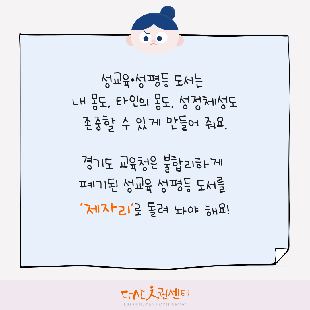 경기도 교육청은 불합리하게 폐기된 성교육 성평등 도서를 ‘제자리’로 돌려놔야 합니다.
