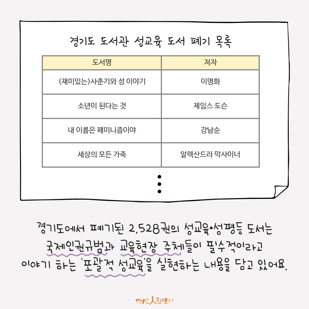 #성교육 #성평등 #도서폐기 #성교육도서폐기 #성평등도서폐기 #2528권의도서폐기 #경기도교육청 #책을제자리로 #다산인권센터